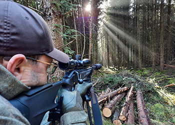 In the Club’s first trip of the year to Exmoor, just three lucky rifles are invited to hunt lowland Red deer in the Exe Valley near Tiverton, Devon, in a beautiful block of mixed forestry, where these huge Red deer are abundant.